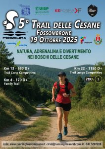 Il 19 Ottobre 2025 si svolgerà a Fossombrone il “5° Trail delle Cesane”, partenza ore 9:00